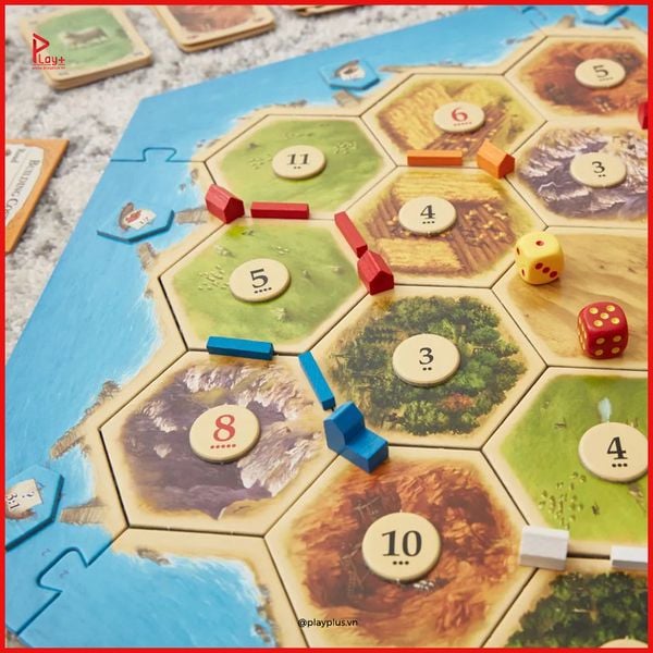 Catan là một board game chiến thuật nổi tiếng, nơi người chơi sẽ xây dựng các khu định cư, thu thập tài nguyên và thương lượng để mở rộng lãnh thổ. Mỗi người chơi sẽ cạnh tranh để chiếm lấy vị trí thuận lợi nhất trên bản đồ, sử dụng tài nguyên để phát triển và đạt được số điểm chiến thắng nhất định. Với sự kết hợp giữa chiến thuật và khả năng thương lượng, Catan mang đến những ván đấu đầy kịch tính, thích hợp cho gia đình và bạn bè.