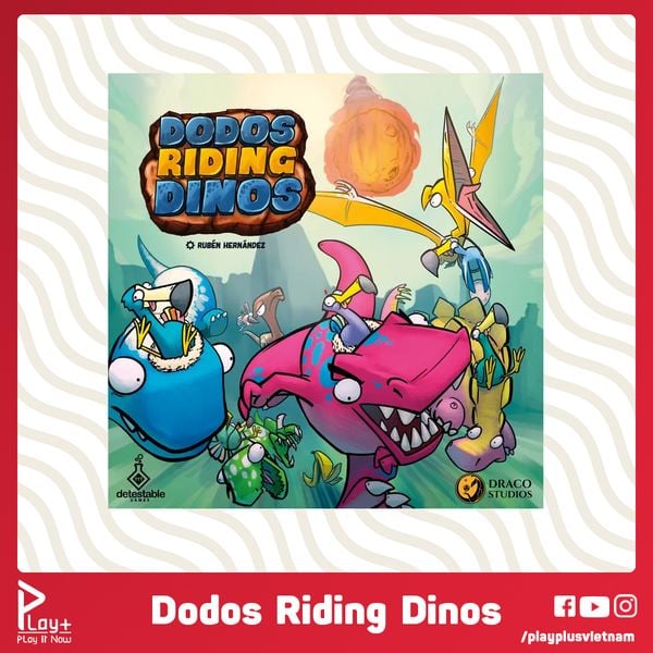 Trong Dodos Riding Dinosaurs, bạn chọn cho mình một Dodo/Dino miniature yêu thích và lao vào một cuộc đua… hỗn loạn đúng nghĩa! Mỗi vòng, người chơi sử dụng thẻ xanh – đỏ – xanh lá để di chuyển và kích hoạt hiệu ứng “quái chiêu”.