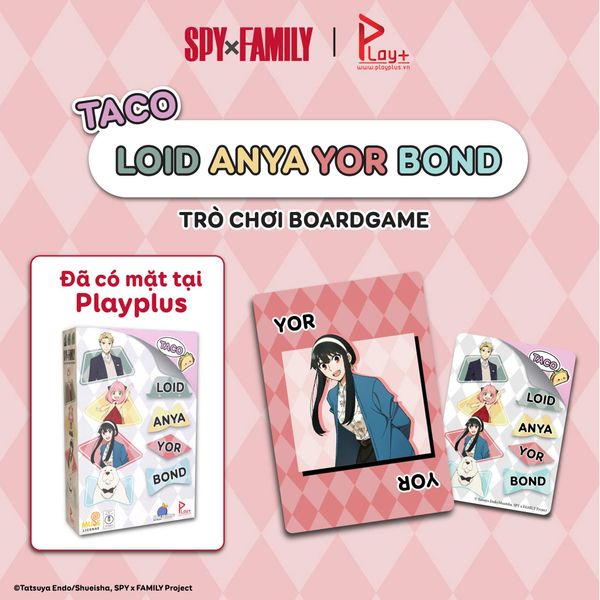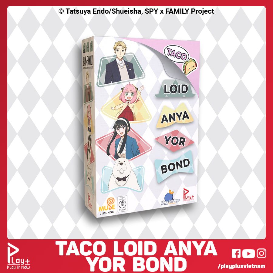 Bùng nổ tiếng cười cùng Taco Loid Anya Yor Bond! – board game phản xạ lầy lội kế thừa lối chơi huyền thoại của "Taco Cat Goat Cheese Pizza", nay trong vũ trụ Spy x Family. Đập bài thật nhanh khi thẻ trùng khớp với tên "Anya", "Loid", "Yor"... một game đơn giản, vui nhộn hoàn hảo cho mọi nhóm bạn và fan hâm mộ anime/manga gia đình Forger!