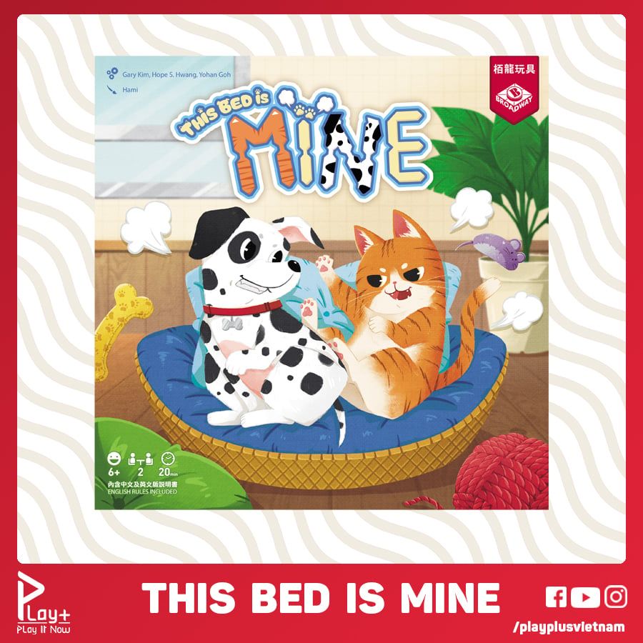 This Bed Is Mine is a strategic game for two players, each of whom acts for the cat's or dog's camp and vies to occupy a larger portion of the bed by placing their tiles. The player with more victory points wins (and thus, the pet camp they represent can enjoy the bed for a good rest!).